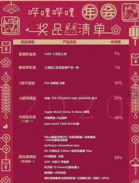 这一年的九月底,原神上线,10月单月营收1.6亿美元,创了中国游戏出海创收的记录。自上线后五个月,每个月的收入都在1亿美元以上。两个月后坊间开始流传过一张图,说的是米哈游年会特等奖是1600个月的工资,一等奖则是徐汇区一套房。