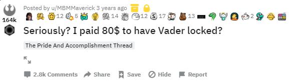 ▲ 海外玩家惊呼:我花了80美元买游戏,你告诉我维达还要再氪金才解锁??