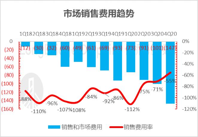 拼多多一改往日销售费用暴涨的风格,本季度销售费用率55%创下了最低记录,与GMV 57%的增长基本持平。