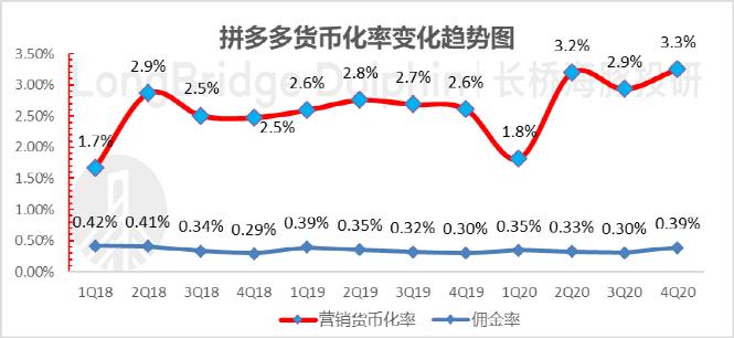 2)本季度广告变现率3.3%、创下在电商旺季又创下了新高;交易佣金率0.39%,处于两年半以来的高位,随着拼多多用户影响力和商家影响力的不断崛起,拼多多变现率已有攀升势头。
