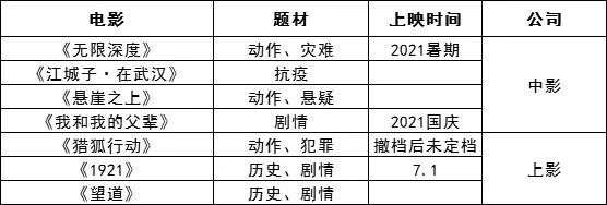适逢建党100周年和抗疫、抗美援朝等众多重大事件和重要节点,今年的主旋律电影数量可能远超往年,是不折不扣的献礼大年。