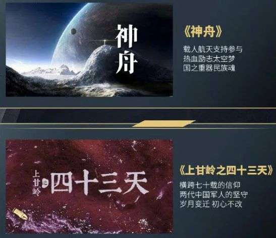 万达在去年片单中官宣了《神舟》和《上甘岭之四十三天》两部主旋律电影。前者首次将载人航天题材引入电影领域,讲述了讲述中国载人航天太空逐梦历程,后者聚焦抗美援朝期间著名的上甘岭战役。