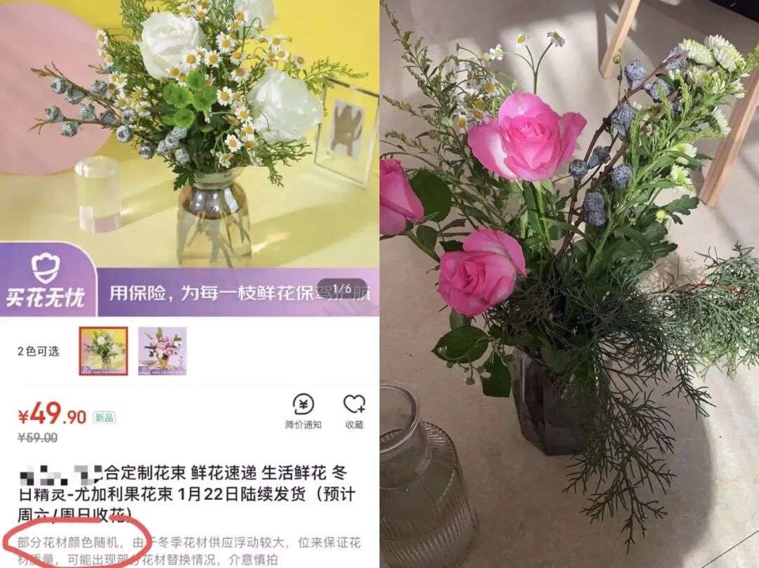 由于随机发售,消费者收到的花常和宣传页不符