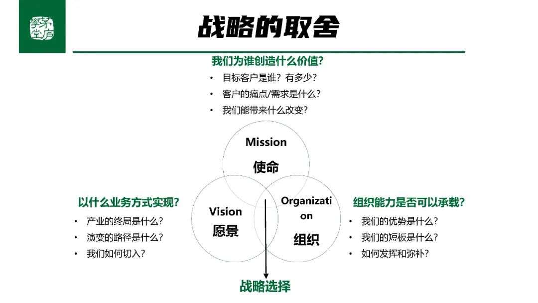 前面和大家分享了战略制定-MVO模型,通过这个模型可以帮助我们梳理出战略定位,然后就可以做战略布局、战略目标和战略路径,最后做进一步的战略拆解。
