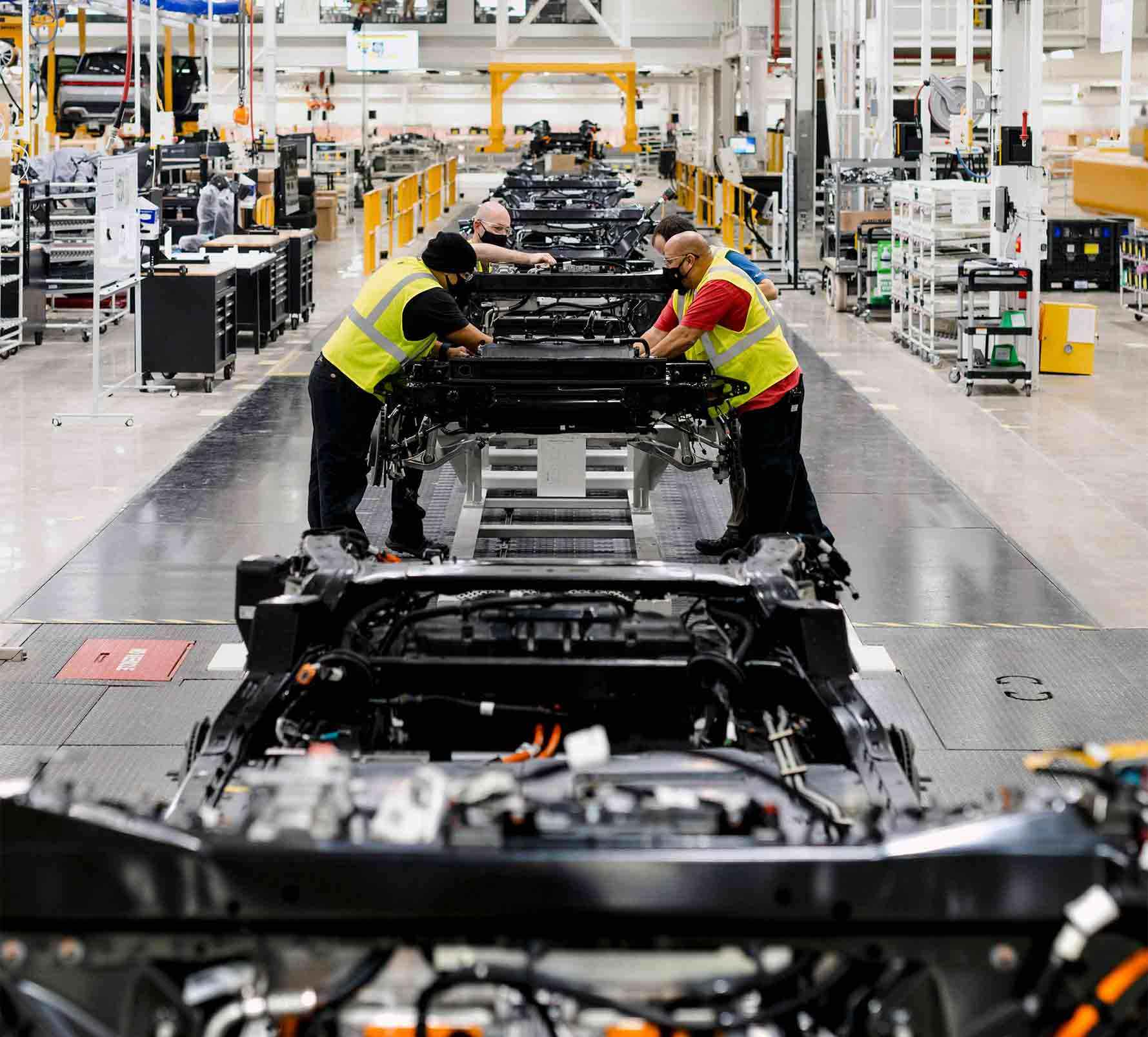 类似的,在Rivian的工厂里,一切也都在按计划进行。这个340万平方英尺的工厂里是Rivian于2017年以1600万美元的价格收购的,此后它进行了大量翻修,耗资超过10亿美元。这里现在粉刷一新,光线明亮,配有一条长长的蜿蜒曲折的装配线,目前正在制造R1T和R1S SUV两款车型。目前,工厂每天只建造几辆车。