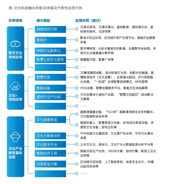 在案例征集专项研究同时,项目组基于案头研究,对于更广泛的文化科技融合热点案例进行追踪分析,尝试梳理文化科技融合的产业前沿领域,并对其细分应用场景进行初步提炼。