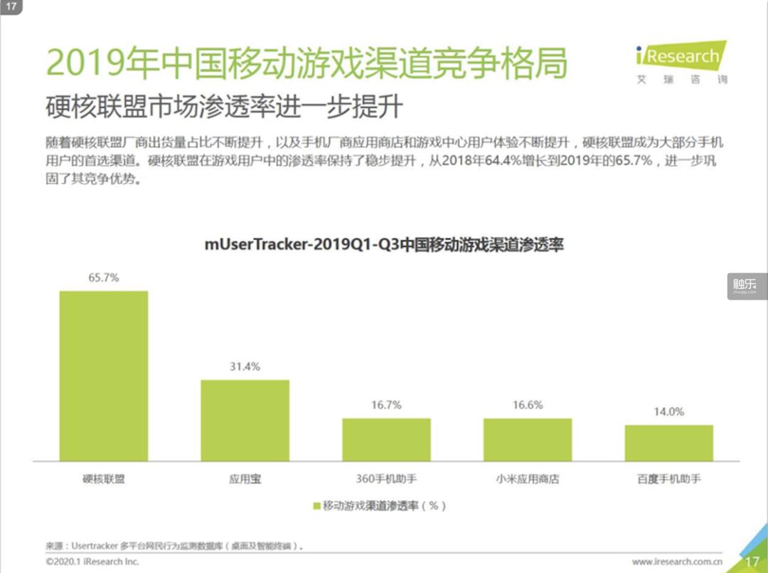 硬核联盟成立后,以手机预装的应用商店占据了大半市场份额(数据来源:艾瑞咨询)