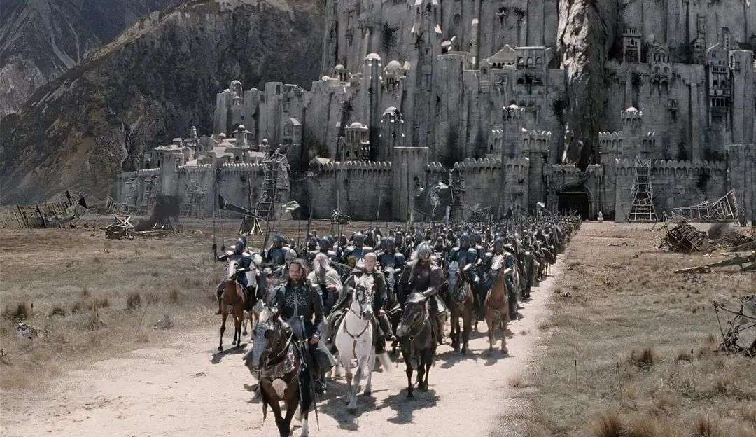 最有代表性的例子,无疑是帕兰诺平原之战。作为第三部《王者归来》的高潮部分,人类在此与代表黑暗势力的半兽人军团殊死一战。一望无际的平原与高大雄伟的城墙配合上万个CG士兵的随机动作反应,达成了虚拟审美与心理真实的契合。