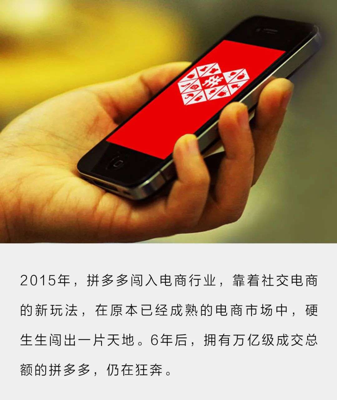2015年,拼多多如同一匹黑马,闯入电商行业。靠着社交电商的新玩法,在原本已经成熟的电商市场中,硬生生闯出一片天地。