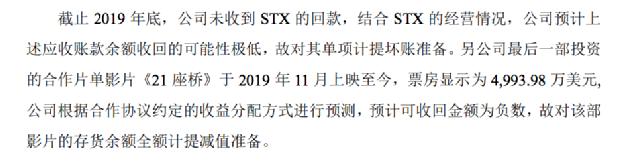 从华谊和STX的“分手”当中,或许能够窥得不少中国影视公司海外布局时面临的艰难险阻。2019年9月,华谊以“及时止损”为由终止了与STX的合作。今年华谊兄弟发布的《申请向特定对象发行股票的审核问询函的回复》显示,2019年华谊计提了7852万元的坏账,均来自于STX。《回复》提及了海外合作项目计提减值的原因“项目一,是因为其原定海外知名编剧去世,后续无人能继续开发;项目二、三是引进剧集,但是却受市场与备案限制无法发行;项目四因版权及内容定位等因素影响,无法获得备案批准,故放弃开发。”