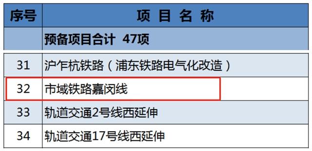 另外说一句,这次嘉闵线是被列为“预备项目”的: