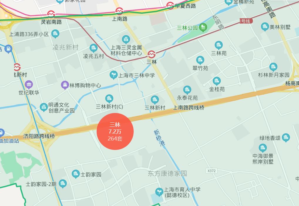 这次的机场联络线,名字就叫“三林南站”,实际地点位于这里:
