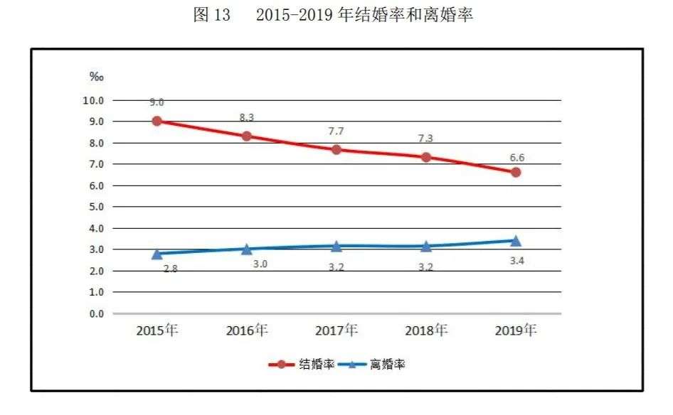 2018年,我国结婚登记对数为1010.8万对,2019年结婚登记 927.3 万对,同比下降8.5%,结婚率不断下降,其背后的原因是适龄结婚人口比例的下降和晚婚趋势,从人口出生等宏观趋势的分析,该因素大概率会保持长期下滑的趋势,对行业造成负增长影响。