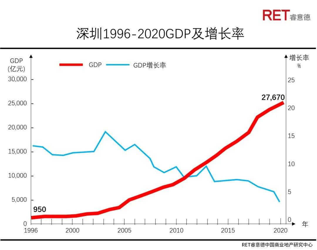 - 2020年深圳GDP为27,670亿元,经济规模跃居全国第三