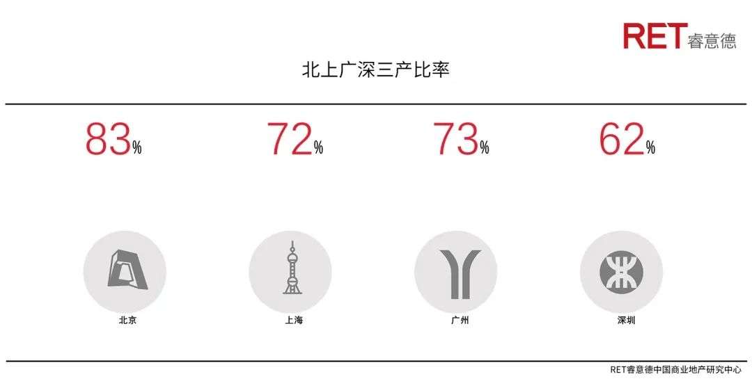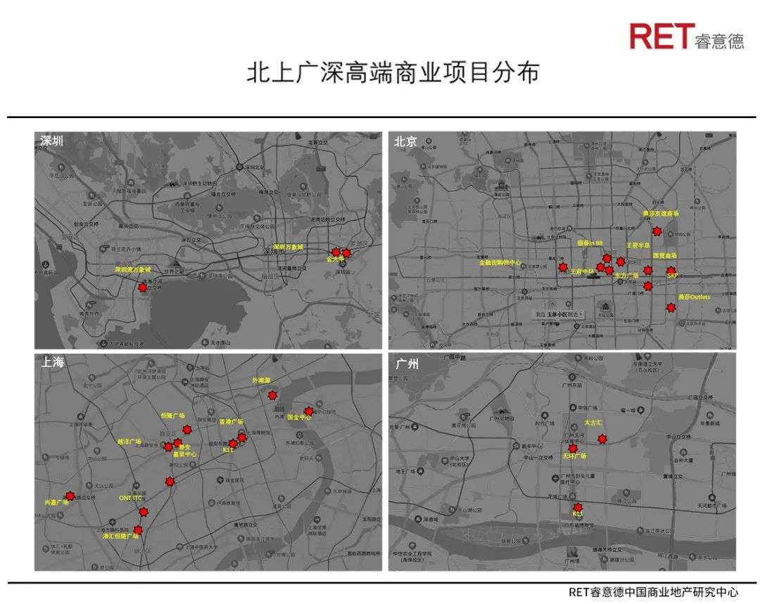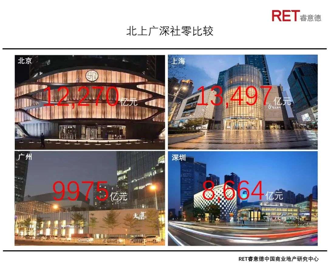 过去40年深圳经济不断创造奇迹,商业地产方面创新也有许多亮点,但在市场规模与产品力发展方面,深圳与其他一线城市如北京、上海及广州相比,仍存在不少差距,主要体现如下。