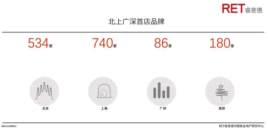 首店品牌入驻数量偏少: 国际品牌进入中国试水城市优化选择上海、北京,然后再进入广州、深圳。2019年北京、上海首店分别以540家、756家领跑全国,深圳明显落后,城市商业地产市场的产品创新及竞争力不足,国际化运营者背景很少。