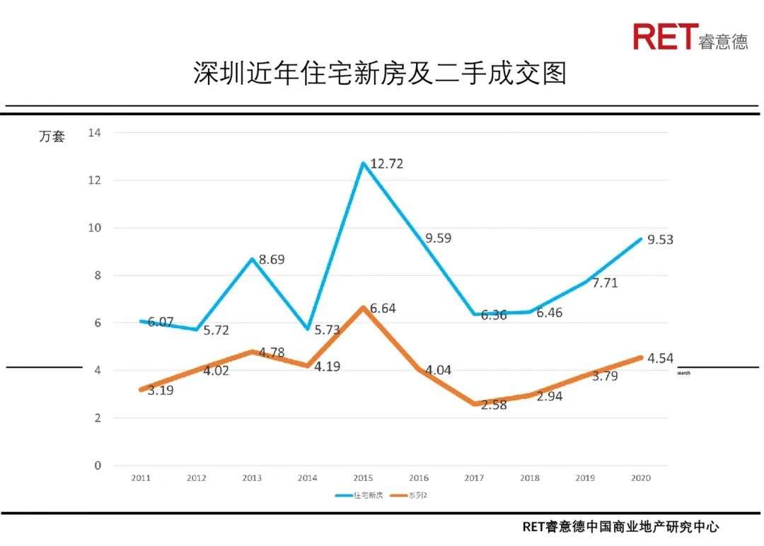 作为工业经济主导城市,深圳住宅供应一直不足。2018年深圳土地住宅供应比例仅为10.7%,2019住宅供应比例有所上升,也仅为20.9%。2020年北京与上海土地供应中住宅比例27%、29%,均远远超过深圳。与此同时,深圳工业用地从2018年的60%上升到现在的64%。未来深圳将把主要商业重点放在存量或旧城改造方向,深圳已经意识到住宅土地平衡意义,未来在新推出片区改造中,住宅开发比例亦将从15-18%提升到30%以上,从而为人口属地化创造基础条件。