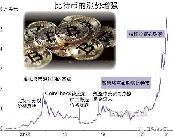 虚拟货币市场在2月8日迎来了重大利好。伊隆·马斯克领导的美国特斯拉宣布持有15亿美元比特币。比特币涨势加强,2月下旬达到5.55~5.9万美元。总市值首次突破1万亿美元。