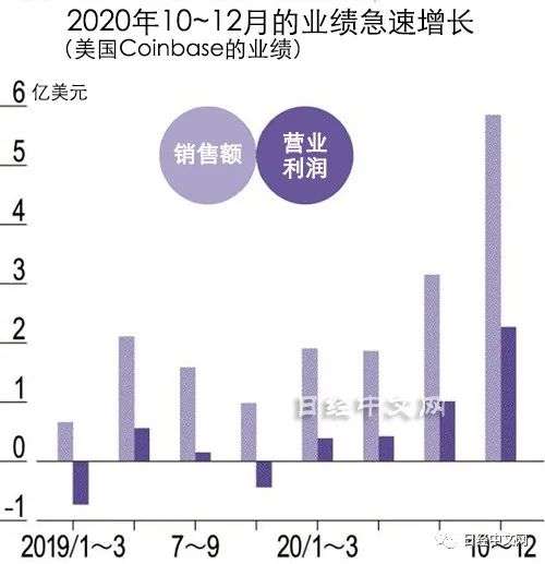 在美国,拥有4300万用户的虚拟货币交易所即将进行IPO。这是最大比特币交易所美国Coinbase Global。2020财年(截至2020年12月)的营业利润达到4亿美元,利润率为32%,高收益十分抢眼。虚拟货币涨势加强的2020年10~12月的营业利润为2亿美元,相比7~9月翻了一番。