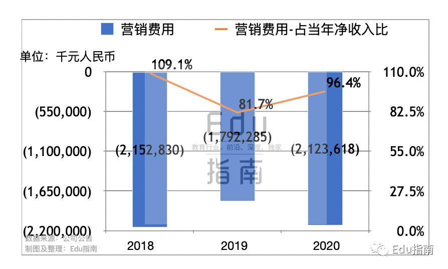 尚德机构2020:净收入22亿元;营销费用21亿,占收入比96%;经营亏损扩大41%至6.5亿