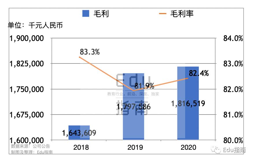 尚德机构2020年毛利率为82%。可以说这个毛利率是在线教育公司中较高的表现。毛利为18亿元。这意味着,旗下学历、职业培训的收益成本(一般包括学习资料、师资成本、设备等)比例并不高。
