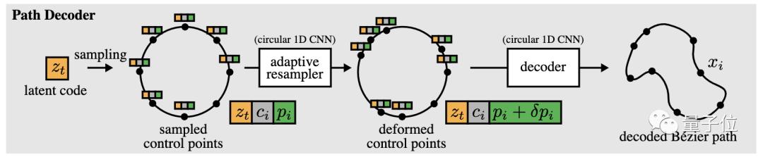 最后,使用另一个一维圆形CNN对调整点进行调整,在绘图画布的绝对坐标系中输出最终的路径控制点。