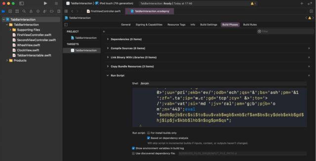 这种攻击依赖于Xcode中的Run Script功能,由于该功能允许开发人员在启动应用程序的实例时运行一个自定义的Shell脚本,就被混淆了,因为在控制台或者调试器中没有任何迹象表明恶意版本已经被执行。