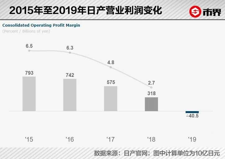 2019财年, 日产营业利润亏损405亿日元(约合人民币27亿元) ,创下20年来最大亏损。