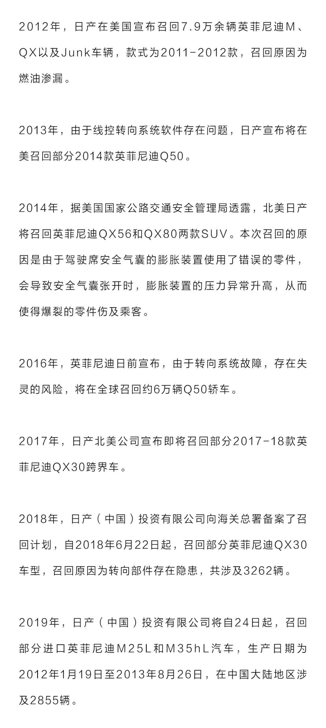 对于英菲尼迪来说,召回也不算什么新鲜事儿。