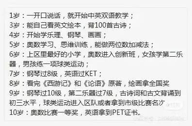 3岁自己看英文绘本,背100首古诗,7岁钢琴过8级,8岁看完西游记和论语原著,绘画要拿全国奖,10岁要拿奥数一等奖.....