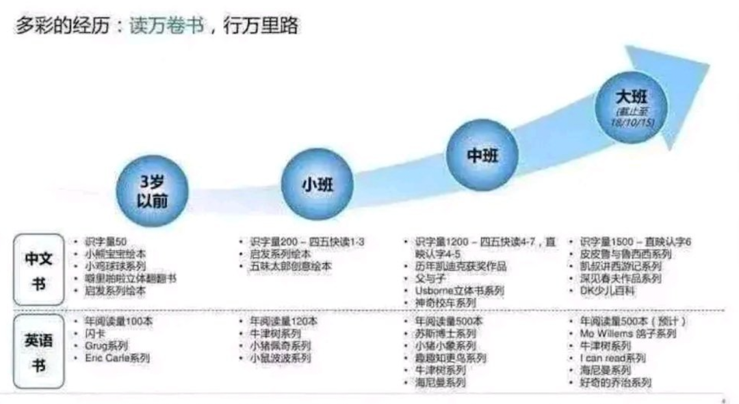 上中班认字1200个,能背100首古诗,英语书年阅读量是500本,