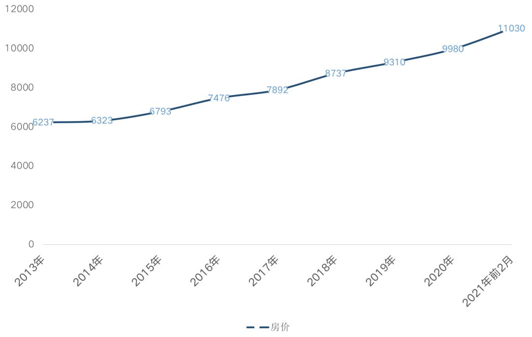图:2013年-2021年前2月全国房价均价走势