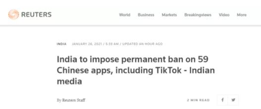 因为印度政府的永久封禁,今年1月,字节跳动宣布关闭印度业务,并裁员2000多名员工,并就出售其TikTok在印度的业务展开了初步谈判。