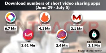 去年在禁令实施后的一周时间里,短视频市场上出现了一个巨大的缺口。印度的其他短视频分享类应用如Roposo、Chingari、Trell、Mitron、TikTik、Moj的下载量迅速攀升,发展势头迅猛。