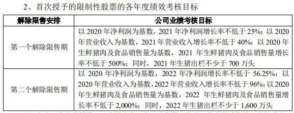 今年1月中旬,主营业务为生猪养殖的天邦股份发布了股权激励计划,业绩考核条件包括:以2020年净利润为基数,2021年净利润增速不低于25%,2022年净利润增长率不低于56.25%。