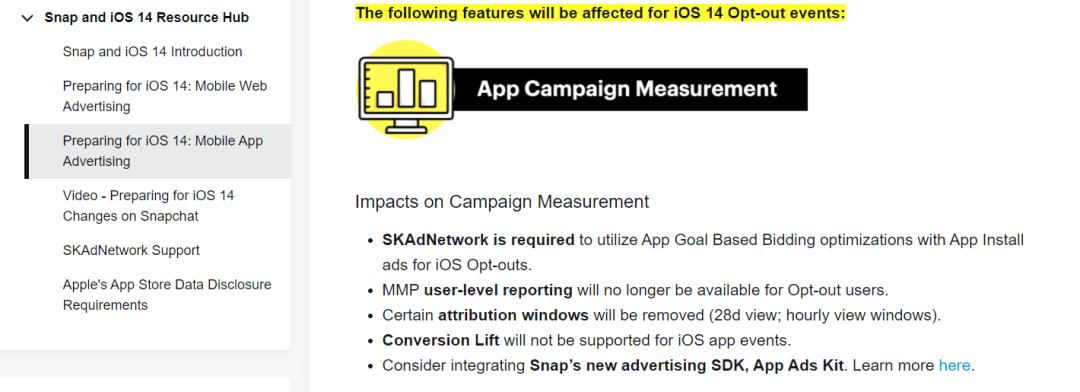 同样,Snapchat也对苹果的隐私安全政策持支持态度,并在其官网Business Help Center中增设Snap and iOS 14 Resource Hub以协助广告主更好地过渡。不过,此前根据美国银行的预测,Snapchat将会是受IDFA影响最大的平台之一。也许是考虑到用户体量较小,Snapchat还无法像Facebook那样与苹果正面对抗。