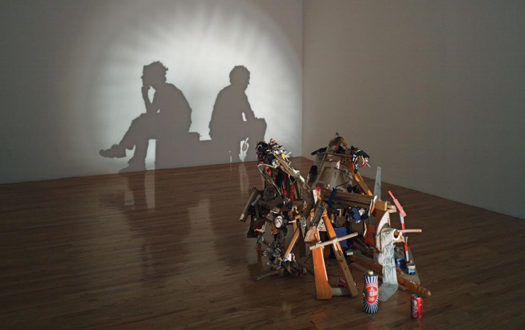英国当代艺术家蒂姆·诺贝尔 & 苏·韦伯斯特夫妇(Tim Noble & Sue Webster),利用光影的效果,通过不同角度的照射堆砌的垃圾,创造了一个完全不同的景象,也隐喻着人和“垃圾”的关系。