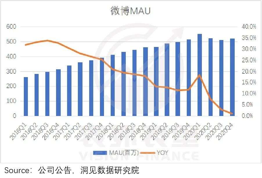 财报数据显示,2020Q4微博MAU达到5.21亿人,是一个大流量体。