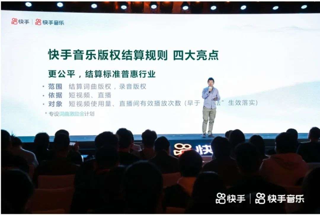 同时,新的结算标准不再只针对单个录音产品统一结算,而是细分到词曲,为音乐创作的每个环节都赋予了更实际的价值。除了短视频使用场景之外,快手还增加了直播场景中的音乐结算规则。除此之外,在这次的版权大会上,快手还公布了其他一些利好行业的举措,如预付金制度、开放平台便捷查询歌曲数据、非独家授权作品同等享受该结算标准。