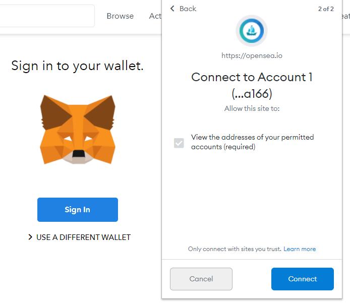 在注册账号这一步,OpenSea(以及其它类似网站)和我们常用的那些网站服务不同,需要的不是用户的邮箱、手机、密码甚至其他个人信息之类的,而是导入用户的加密货币钱包。