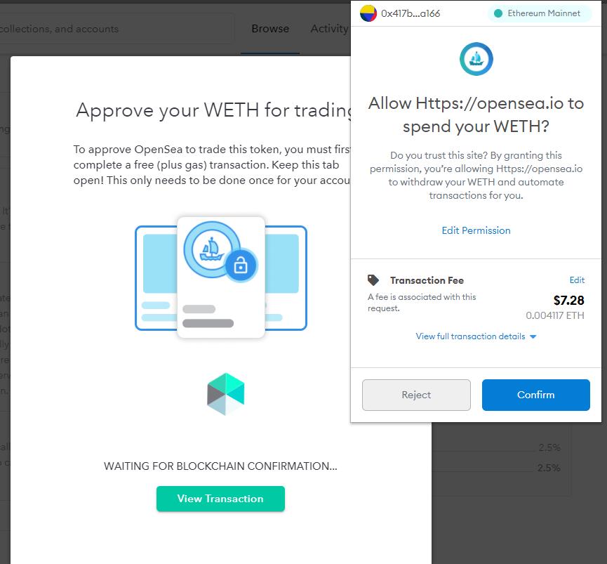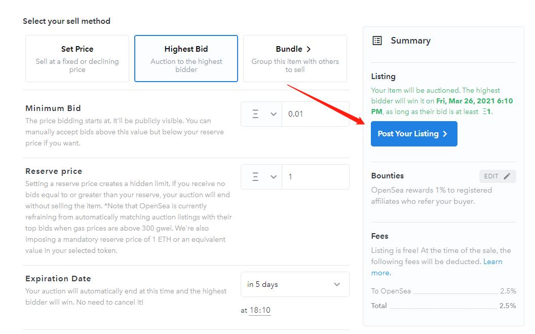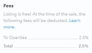 无论选择哪一种,OpenSea 都会在成交的时候抽取2.5%的手续费: