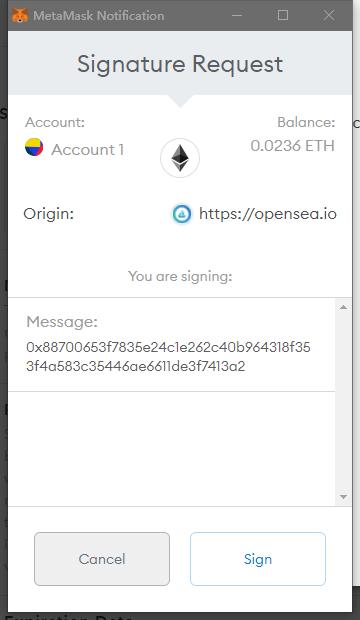 交易完成后,还需要在 MetaMask 上进行一个签名操作,才能完成上架的最后一步流程: