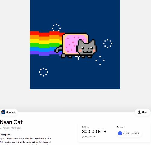 一张梗图之所谓能够流传整个互联网,就在于它可以被无限次复制、修改、重新演绎。如果一张梗图变成了 NFT,就像 Nyan Cat 彩虹猫那样,其他人依然可以大体上不受限制地任意使用 Nyan Cat——但只有 NFT 的拥有者可以在互联网上宣称,我是 Nyan Cat 的拥有者。