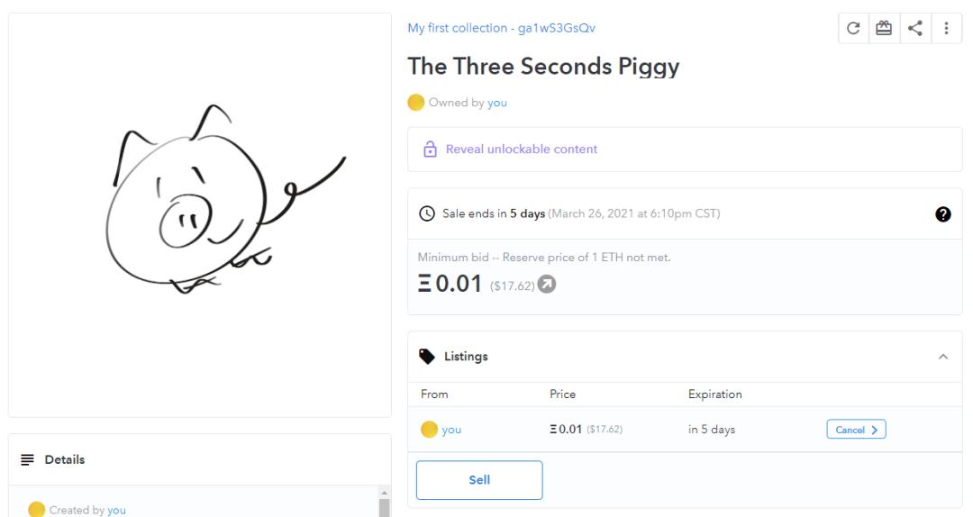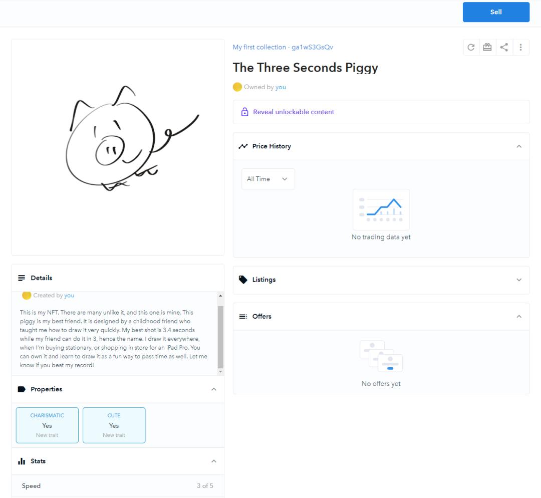 创建完成后,硅星人的三秒猪终于正式成为了 NFT。它的地址是 http://bit.ly/3secpiggy