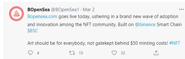 有人把数学家欧拉的公式创作成歌曲,以 EulerBeats 的身份发表在以太坊上以 NFT 出售,结果 BSC 上出现了完全相同的作品,发表者为 MusicalBeats;Larva Labs 发布的数字头像合集 CryptoPunks,也被一个名叫 Binance Punks (Bunks) 的账号盗版了(后来甚至还出现了波场版本 Trunk);就连币安的 NFT 交易所也叫 BOpenSea……