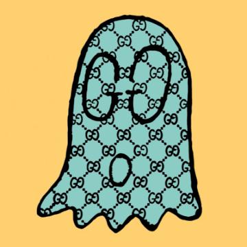 大部分NFT创作者和 Dorsey、Beeple 相比,远远没有名气,但 NFT 被认为是平民创作者也可以获利的市场,上架的艺术品,从文字、音乐,到静态图、动图和视频,堪称五花八门,从稀奇古怪到毫无创意可言的玩意都有(甚至有些还真能卖出去),门槛看起来并没那么高。比如下面这幅 Gucci 鬼魂: