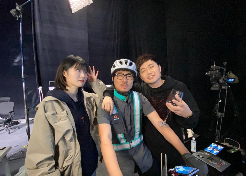 李正、黄贺和朱萧木一次在直播后台的合影。图/李正提供