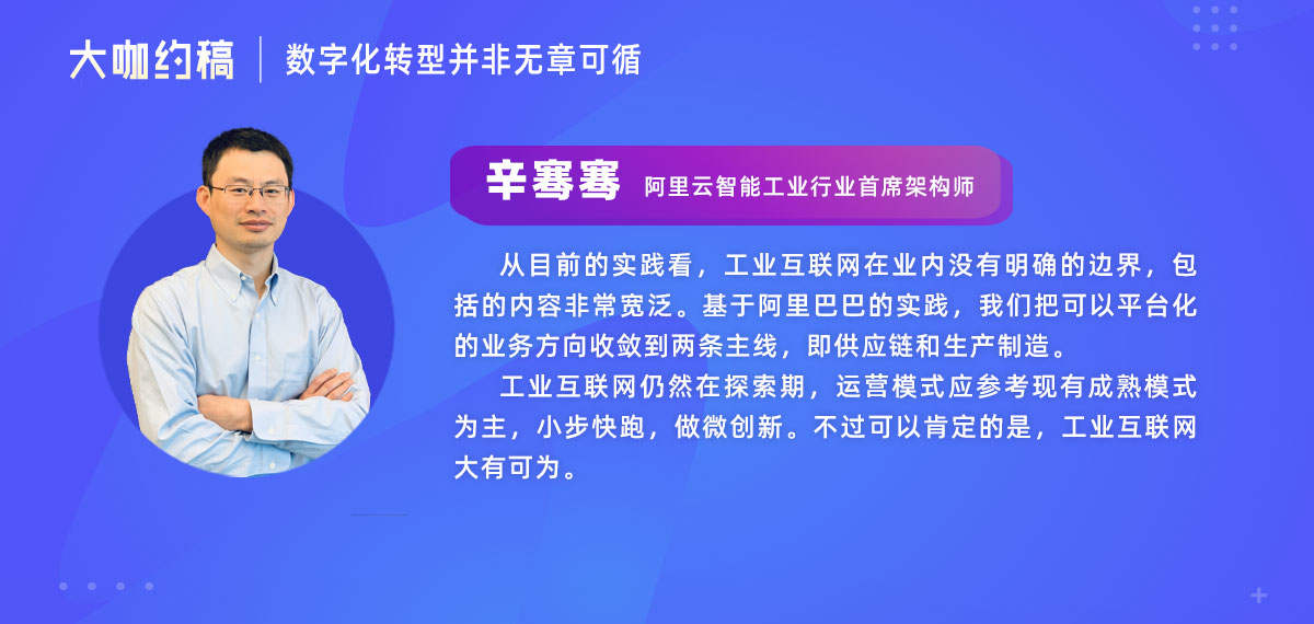 总的来说,从目前的实践看,工业互联网在业内没有明确的边界,包括的内容非常宽泛,基于阿里巴巴的实践,我们把可以平台化的业务方向收敛到两条主线,即供应链和生产制造。但不管定位在哪个业务方向,初期如果没有外部资源的导入,单纯靠运营公司来冷启动平台,是比较吃力的。这里说的“资源”,可以是政策资源、头部企业供应链资源等;运营主体可以新建,如头部企业和当地政府成立合资公司,也可利旧,如头部企业的三产公司,或者行业内的服务商,运营主体作为各种资源的载体。因为工业互联网仍然在探索期,运营模式应参考现有成熟模式为主,小步快跑,做微创新,在做的过程中去探索新的模式。可以肯定的是,工业互联网大有可为。