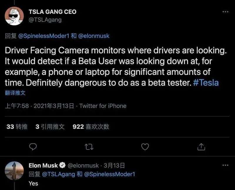 就在马斯克在推特上自曝特斯拉可以通过车内摄像头监测车主后,在一些特斯拉车主群和新能源汽车群中,有人发出这样的质问。