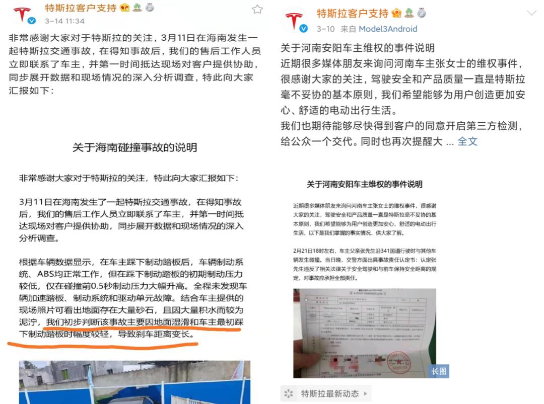 特斯拉的一些甩锅声明,图源特斯拉客户支持官微